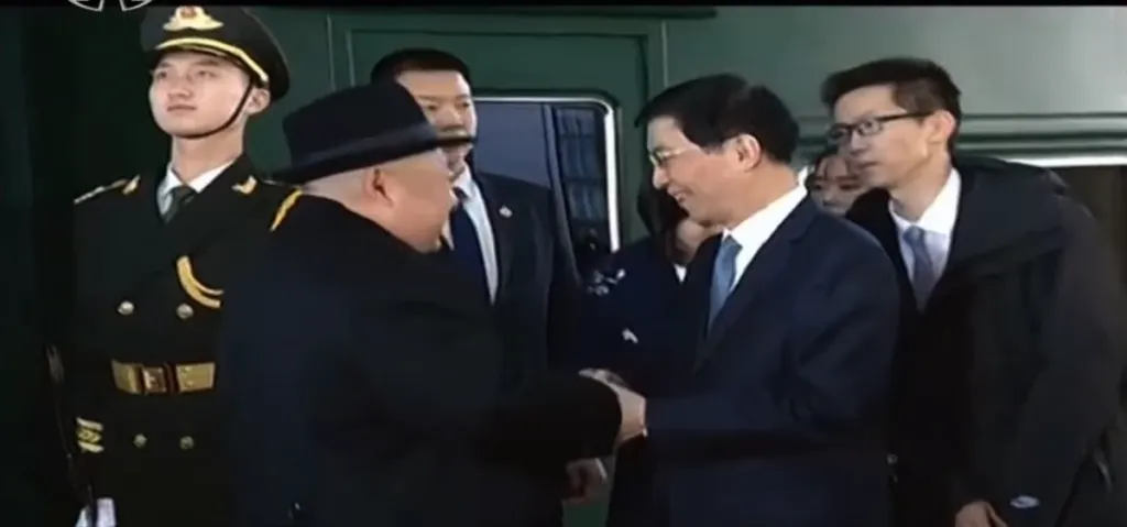宿泊先となる釣魚台迎賓館で王滬寧 中国共産党中央政治局委員と蔡奇 北京市党委員会書記、宋濤 中国共産党対外連絡部長が出迎えます。前二者は北京駅で、宋濤は未明に丹東駅で出迎えています。どうやって先回りしたんでしょう? 丹東からは高速鉄道や飛行機を使えば先回りできますが。
