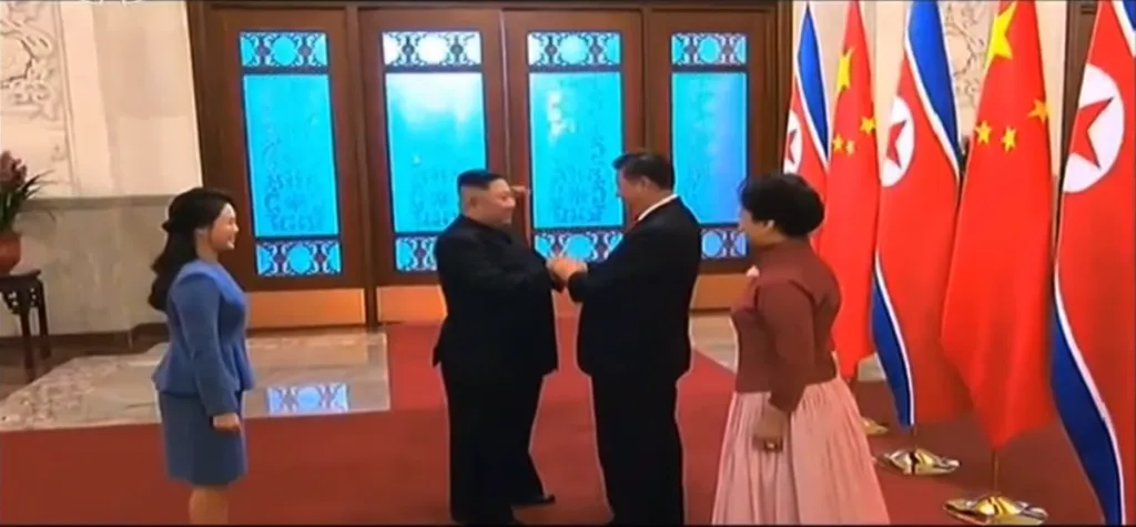 8日午後5時半、習近平・彭麗媛が人民大会堂にて金正恩・李雪主夫妻を出迎えます。