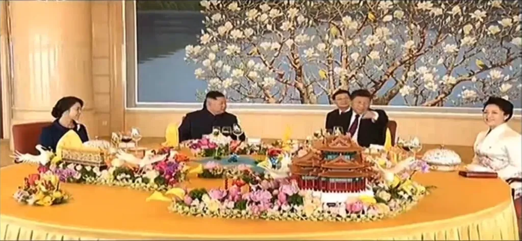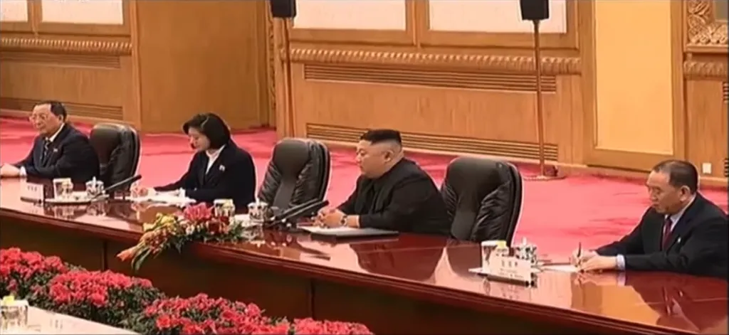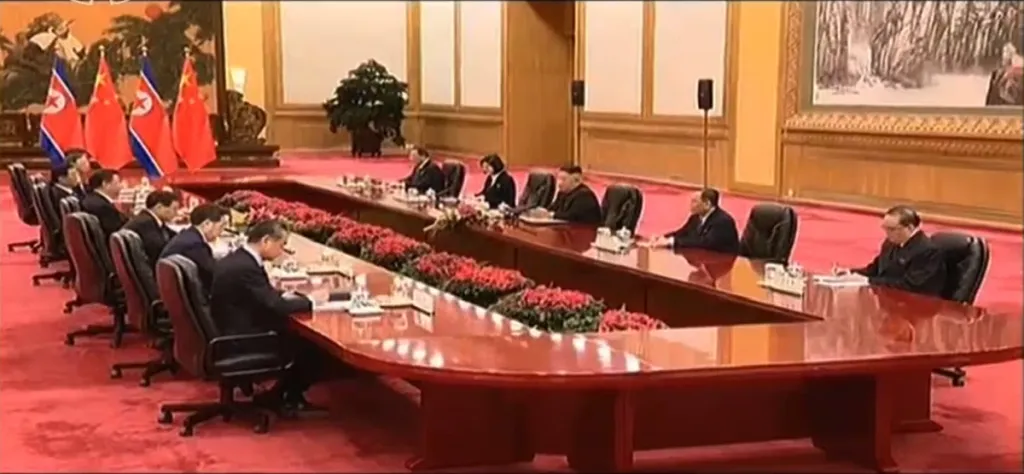 首脳会談の様子です。北朝鮮側は金正恩、李洙墉、金英哲、李容浩が、中国側は習近平、王滬寧、丁薛祥、楊潔チ、王毅、宋濤が参加しました。